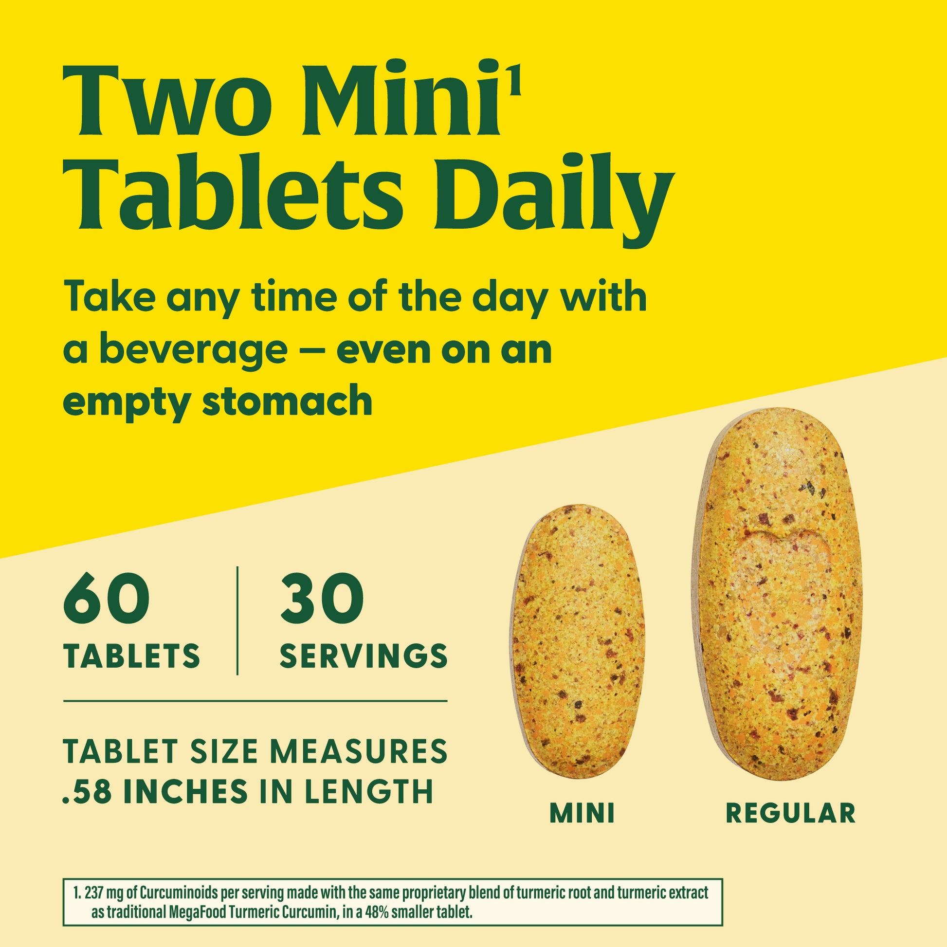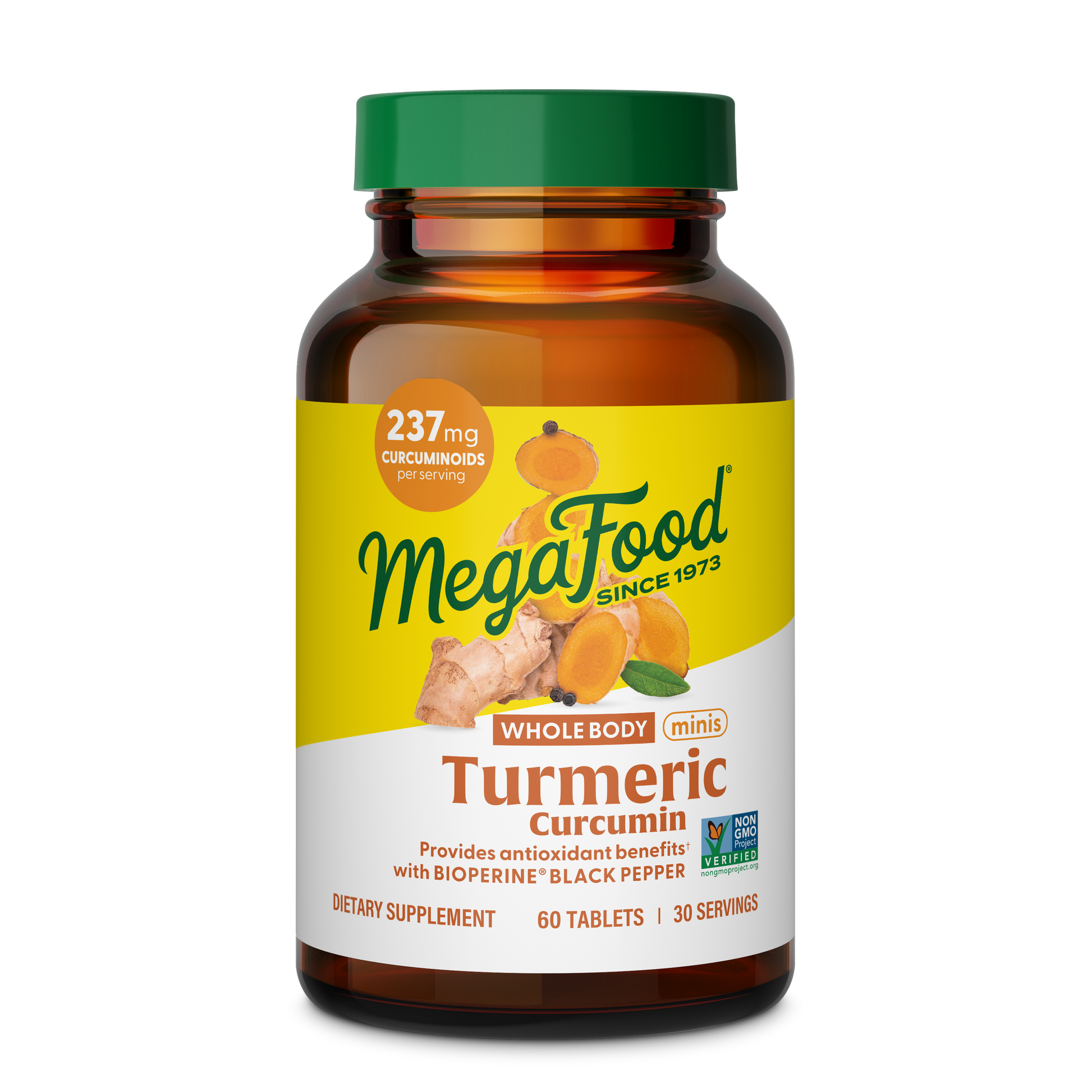 - Get the same proprietary blend of Turmeric root and Turmeric extract as traditional MegaFood Turmeric Curcumin Whole Body in a 48% smaller tablet