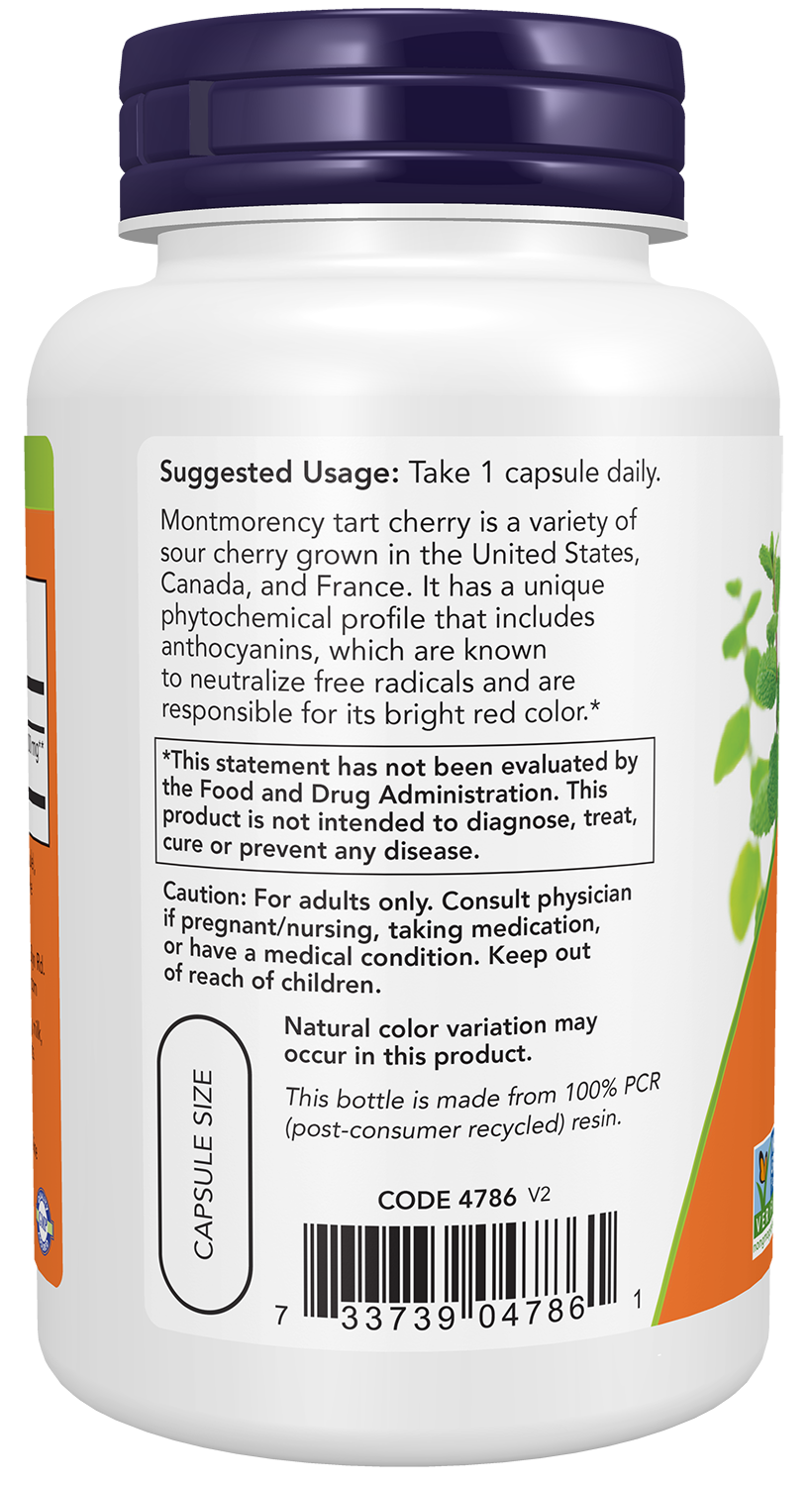 NOW Supplements, Tart Cherry (Prunus cerasus) 500 mg, 50:1 Concentrate, Herbal Supplement, 90 Veg Capsules