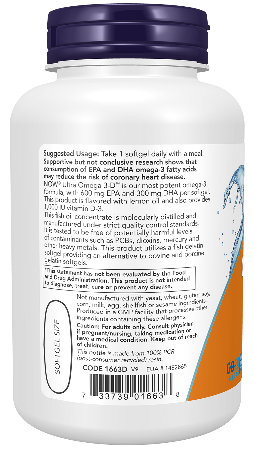 - CARDIOVASCULAR SUPPORT*: NOW® Ultra Omega 3-D™ is our most potent omega-3 formula, with 600 mg EPA and 300 mg DHA per softgel, plus 1,000 IU vitamin D-3